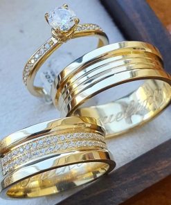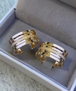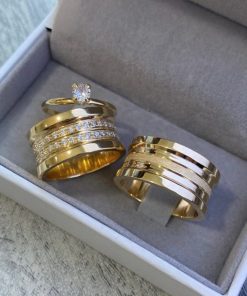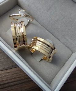 Alianças de Casamento 10mm | Estilo Bulgari 60 Pedras | Polido | Banhado a Ouro 18k Modelo Andy