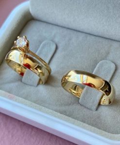Alianças de Casamento 5mm | Linha Tradicional | Semi Anatômico | Modelo Agatha | Banhado a Ouro 18k