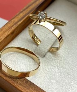 Alianças de Casamento 8mm | Modelo Liso | Semi Anatômico | Moeda Antiga Banhada a Ouro 18K