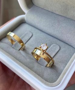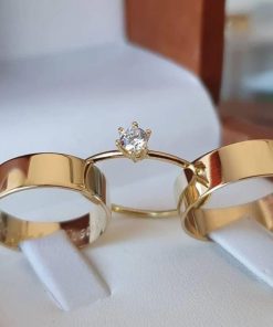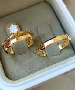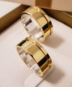 Alianças de Casamento 6mm | Modelo Tradicional com 1 Friso Lateral | Moeda Antiga Banhada a Ouro 18K