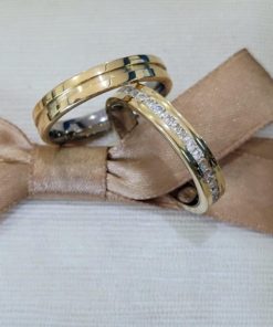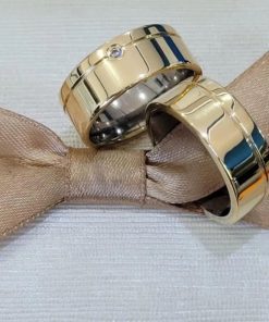 Alianças de Casamento 6mm | Friso Central Largo Diamantado com Aliança Masculina Lisa Semi Anatômica