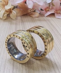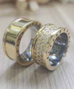 Alianças de Casamento 10mm | Estilo Bulgari | Feminina com Aproximadamente 60 Pedras de Zircônia