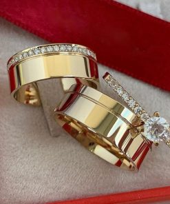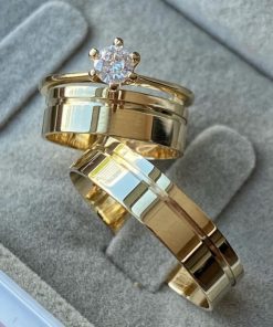 Alianças de Casamento 8mm | Largura Grossa | Liso Polido | Anel Cravejado Anel Solitário Incluso