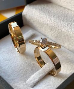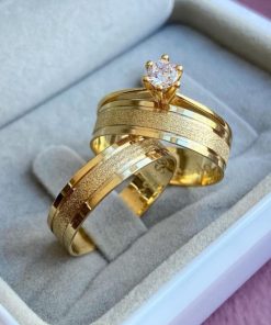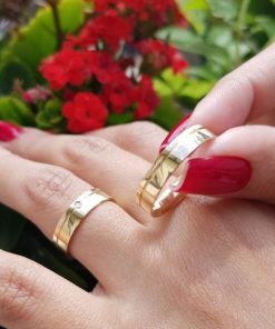 Alianças de Casamento 8mm Tradicional | Modelo Rebeca | Moeda Antiga Banhada a Ouro 18K