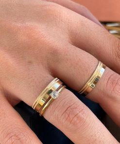 Alianças de Casamento 8mm | Semi Anatômico | Moedas Antigas com 2 Frisos Laterais Diamantados