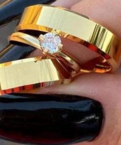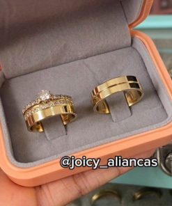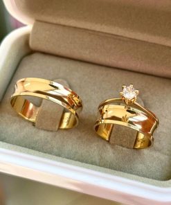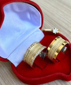 Alianças de Casamento 8mm Moeda Antiga | Modelo Vitória | Chanfrado | Banhado a Ouro 18k