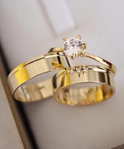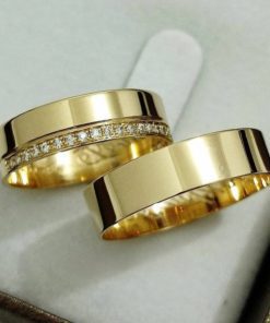 Alianças de Casamento 8mm | Moeda Antiga | Com 15 Pedras de Zircônia | Banhado a Ouro 18k