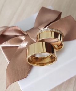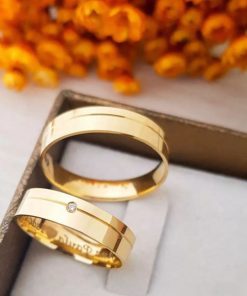 Alianças de Casamento 8mm | Aliança De Moeda Côncava | Modelo Moeda Antiga | Banhado a Ouro 18k