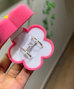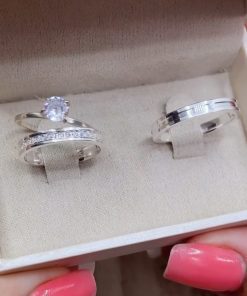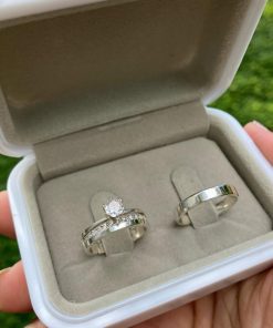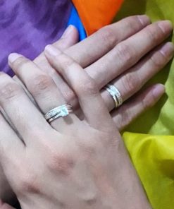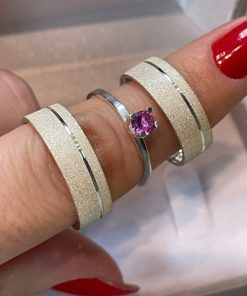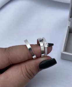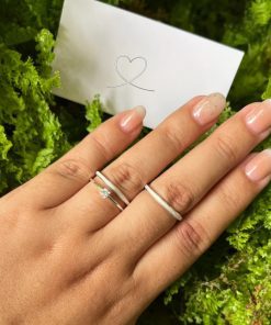 Alianças Finas de Namoro em Prata 950 3mm | Liso Polido | Modelo Chanfrado | Anel Solitário Incluso
