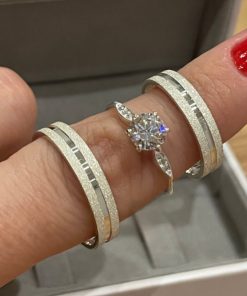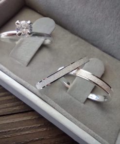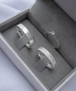Alianças de Namoro em Prata 950 | 4mm Diamantado com 2 Frisos em Lateral Baixa | Modelo Anatômico