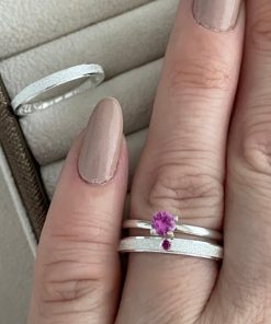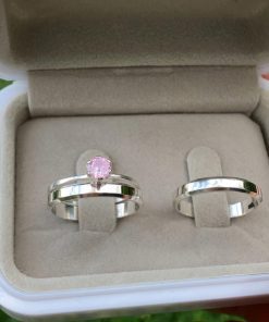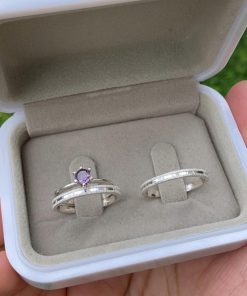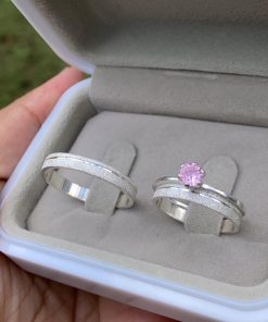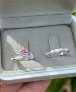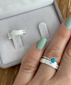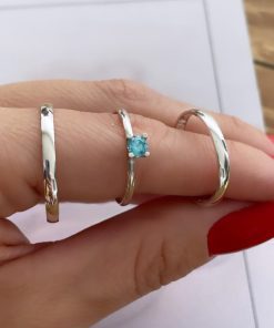 Alianças de Namoro em Prata 950 2mm | Tradicional Liso Redondo | Anel Solitário Azul Incluso