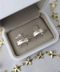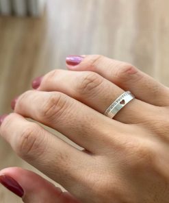 Alianças de Namoro Prata 950 – Modelo Nataly – Friso Lateral com Filete Banhado a Ouro 18K 6mm