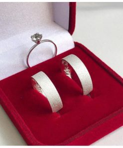 Alianças de Namoro em Prata 950 | 2mm Chanfrado | Modelo Semi Anatômico | Anel Solitário Incluso