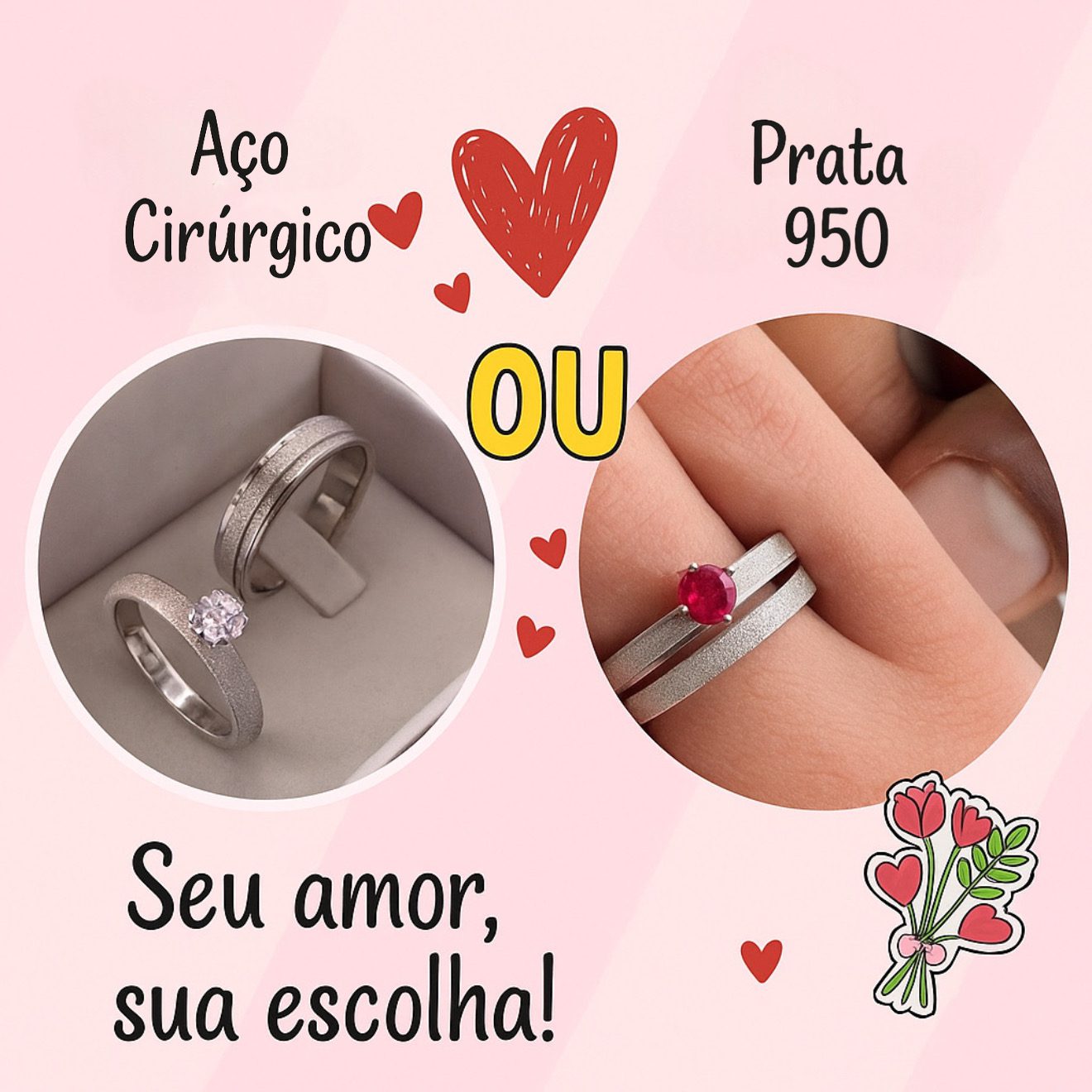 Descubra as principais diferenças entre alianças em Prata 950 e Aço Cirúrgico. Veja qual material combina mais com você e faça a melhor escolha para o seu compromisso!
