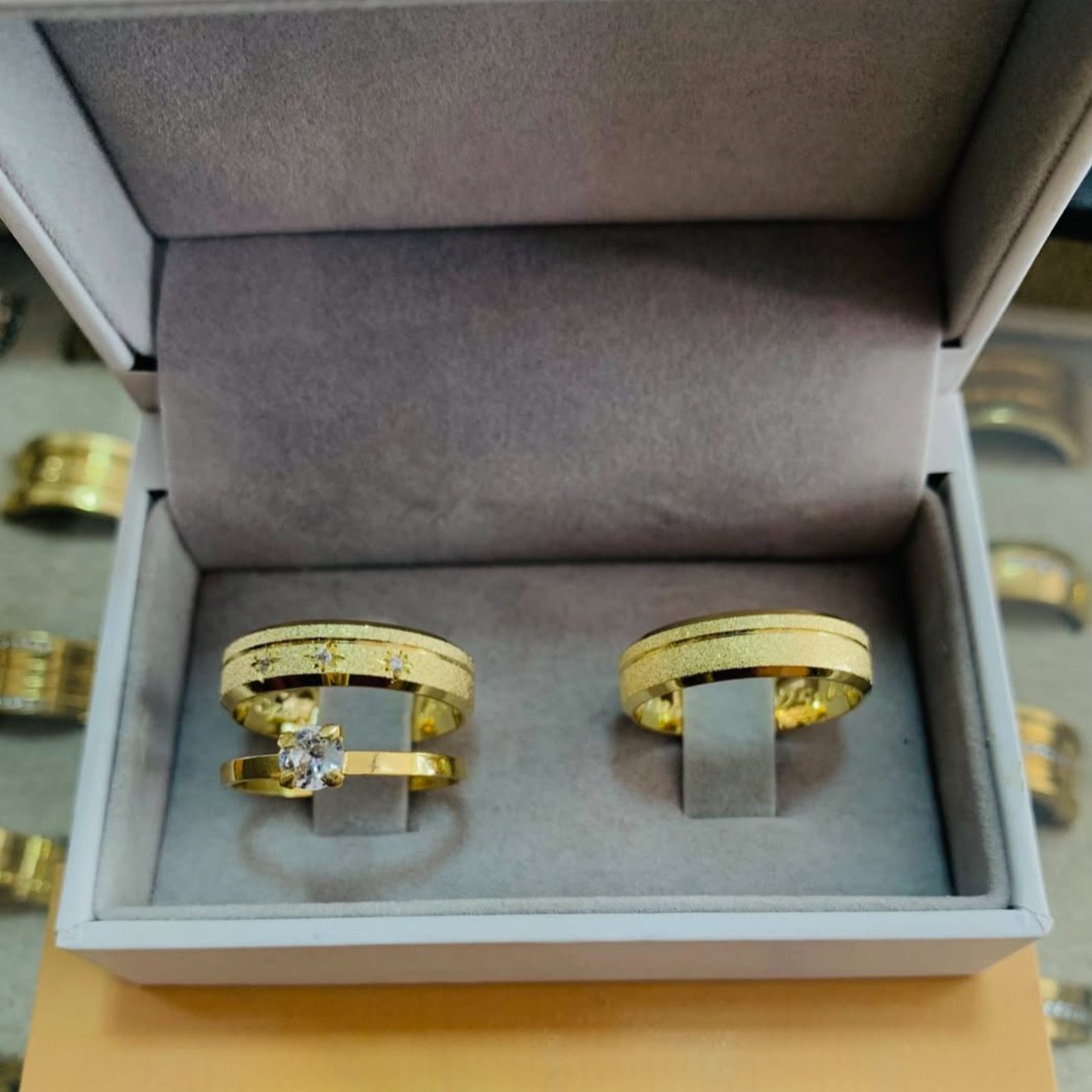 Para medidas que somam acima de 40 (exemplo: 20 feminino + 21 masculino), entre em contato via WhatsApp para ajustarmos o valor e adicionarmos mais ouro à peça.