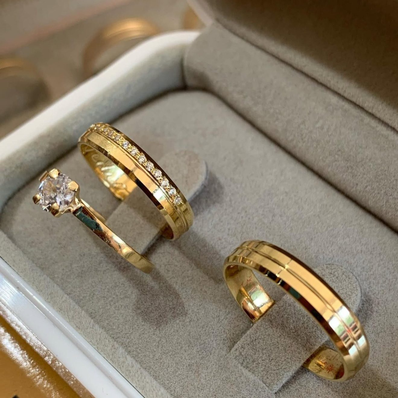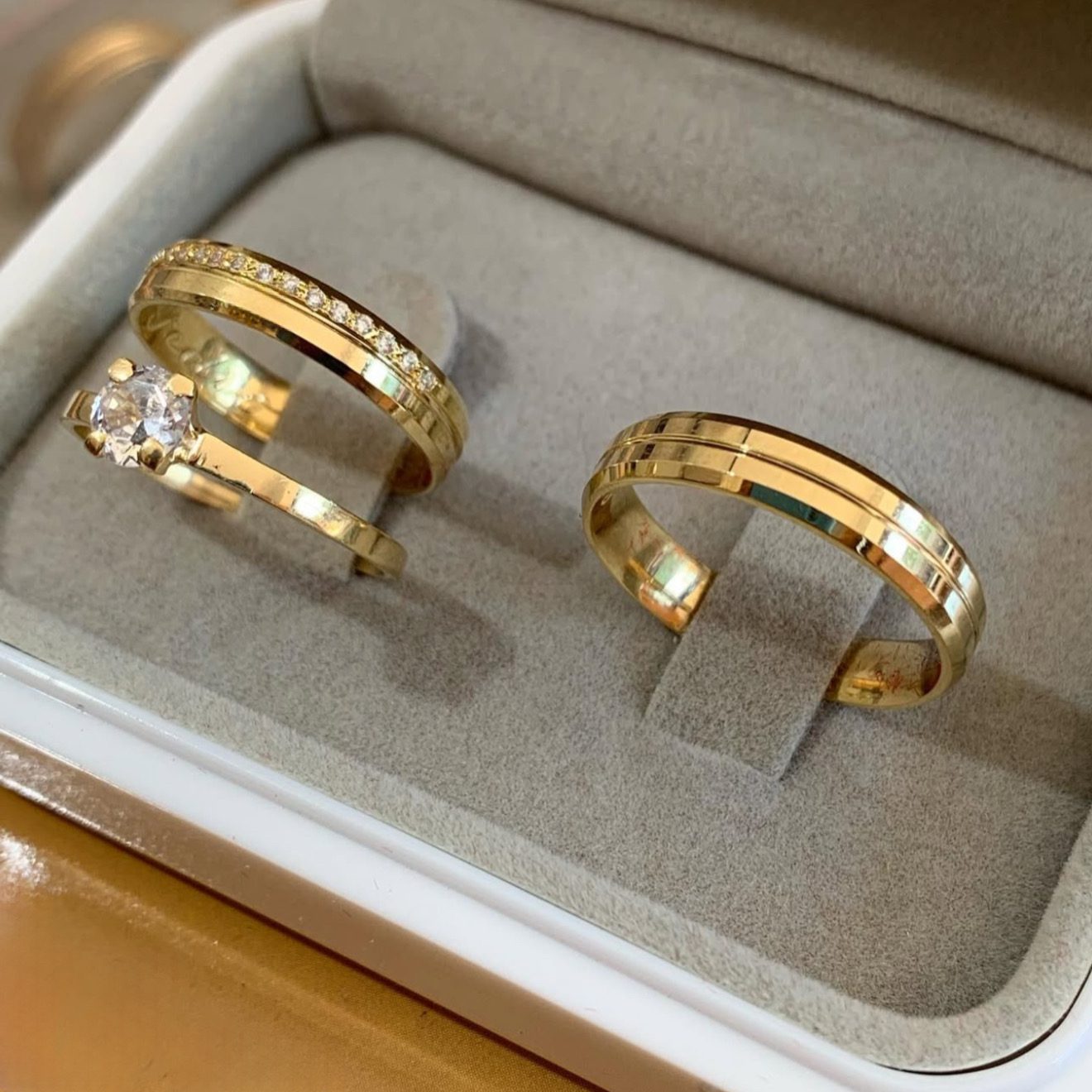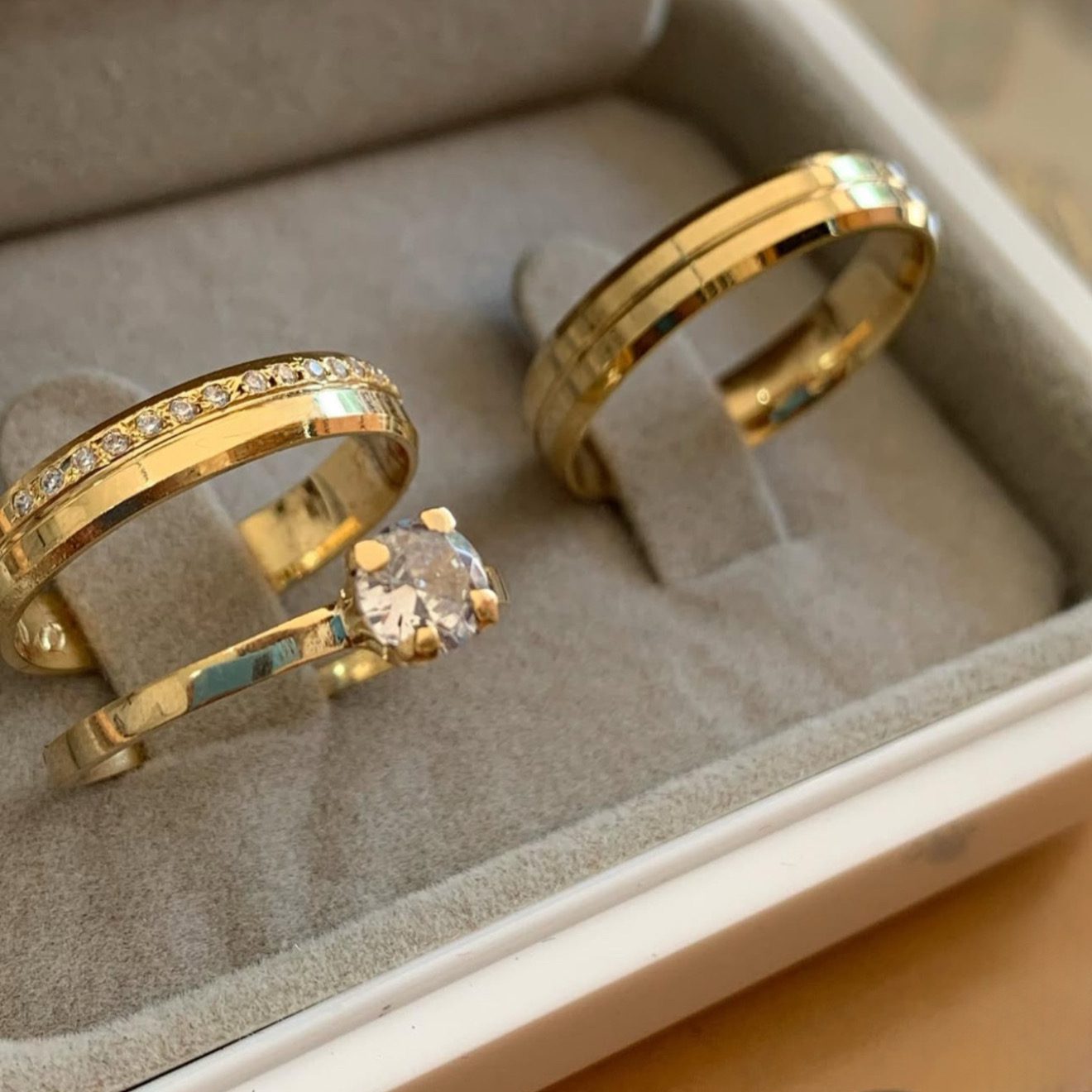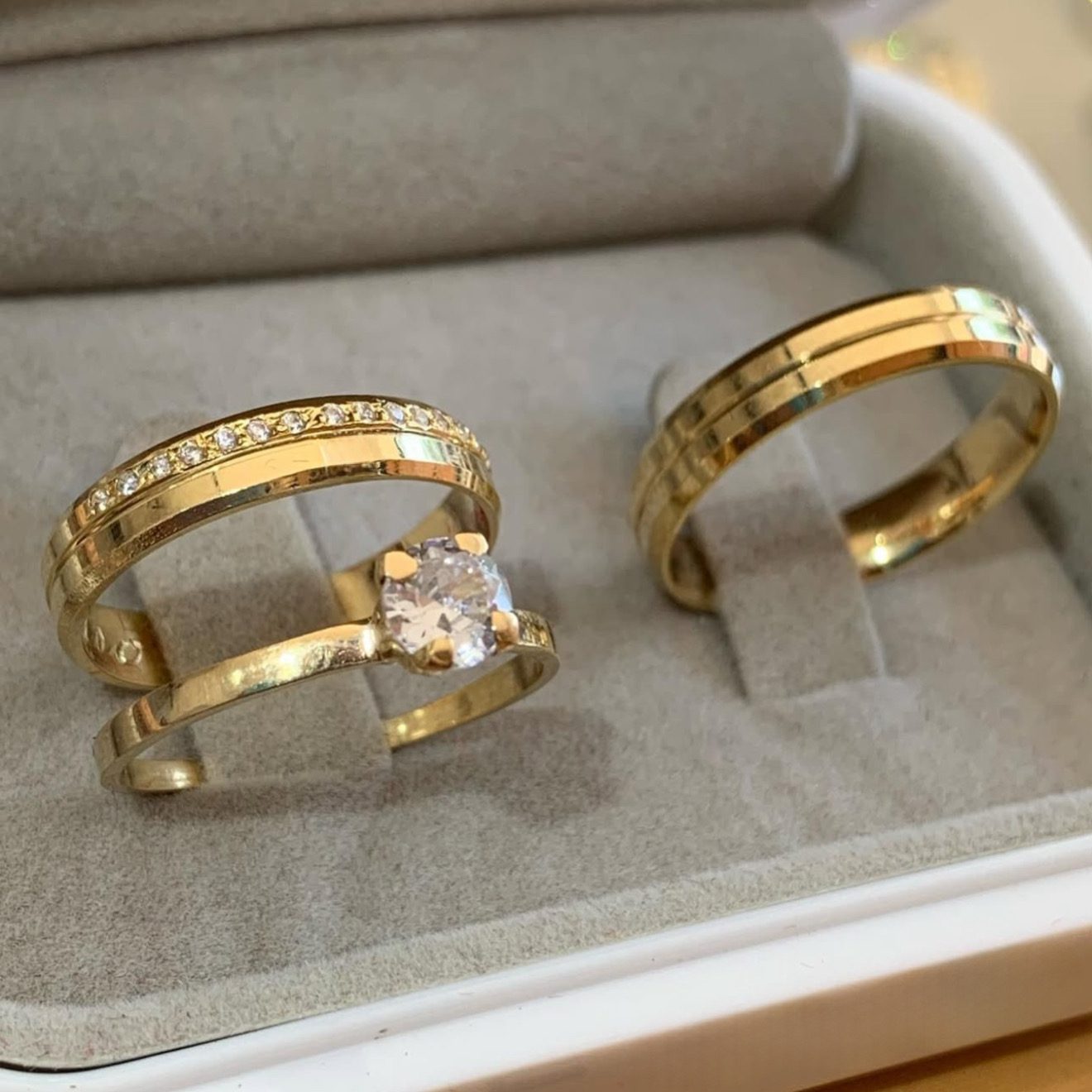 • Um par de alianças em ouro 18K