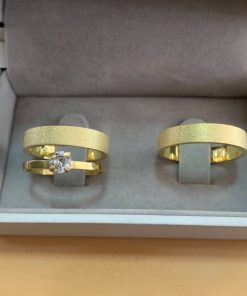 O acabamento todo diamantado destaca o brilho natural do ouro com um toque sofisticado, perfeito para casamentos, noivados e momentos especiais. Um design imponente e harmonioso para simbolizar a união com requinte e exclusividade.