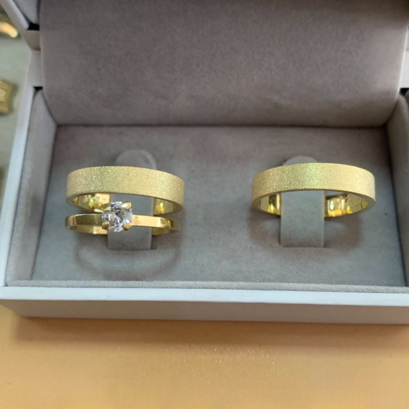 Garanta agora suas alianças de ouro 18K e simbolize seu amor com um design moderno e sofisticado!