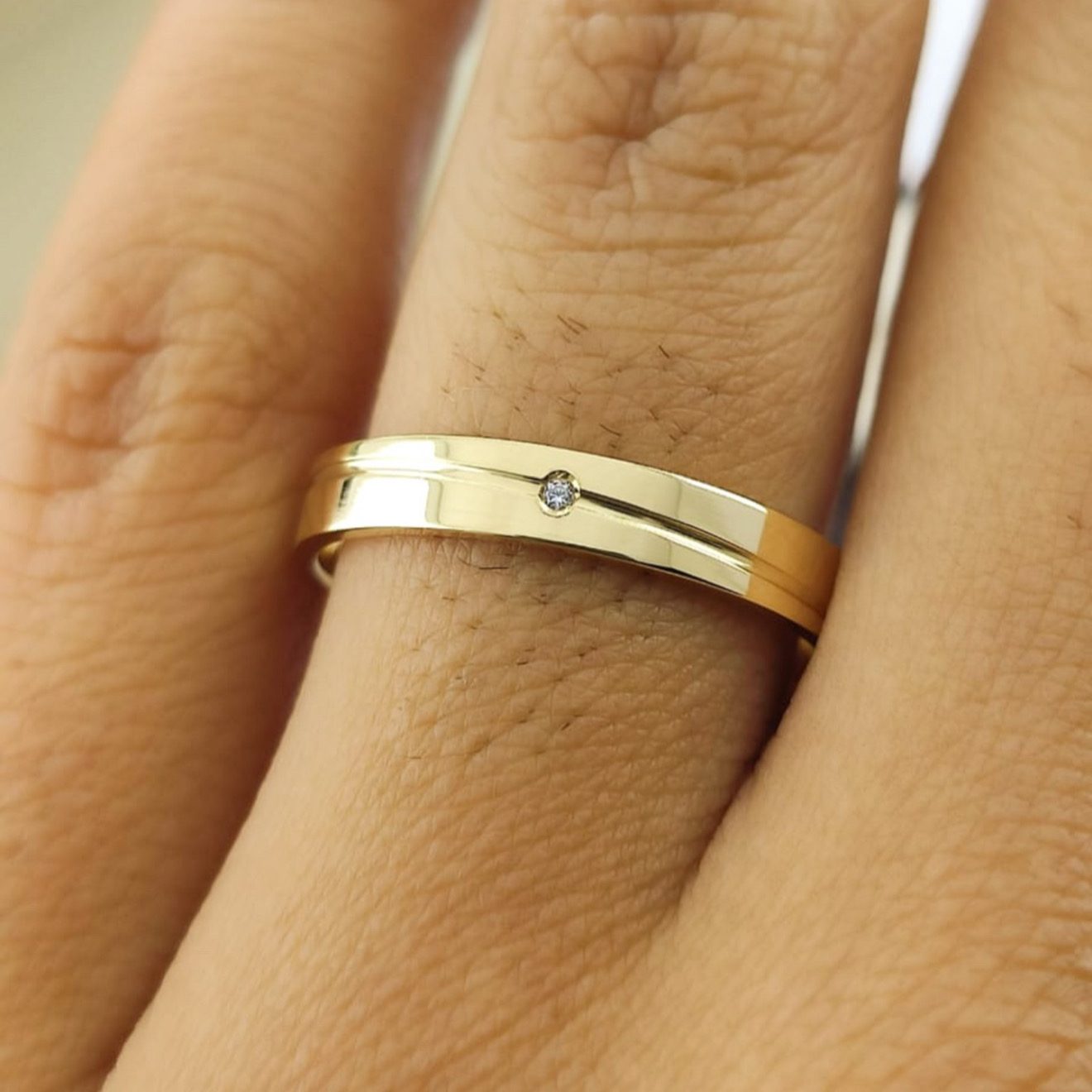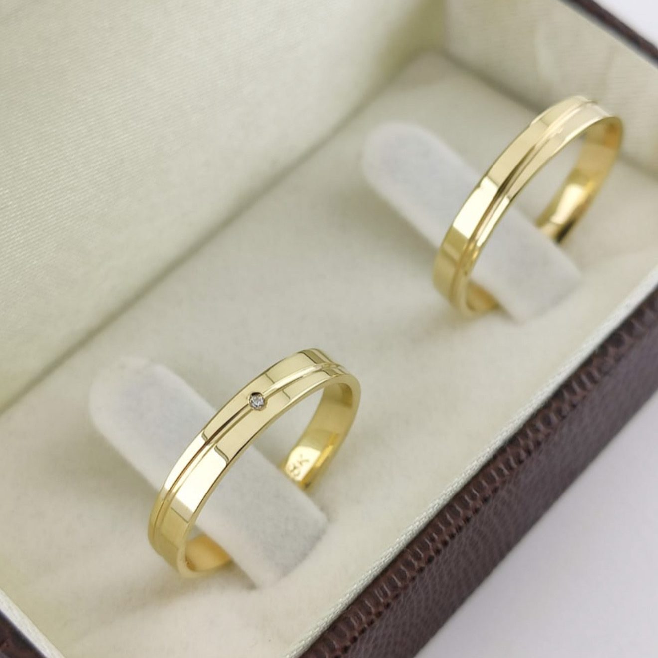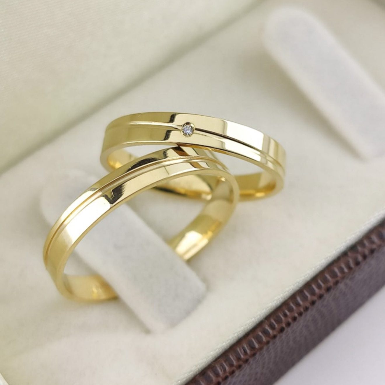 • Um par de alianças em ouro 18K
