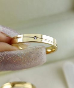 A aliança feminina se destaca pelo charme de uma pedra de zircônia central, que adiciona um toque sutil de brilho à peça. Confortável para o uso diário e ideal para casamentos e noivados, esse modelo representa a união com estilo e sofisticação.