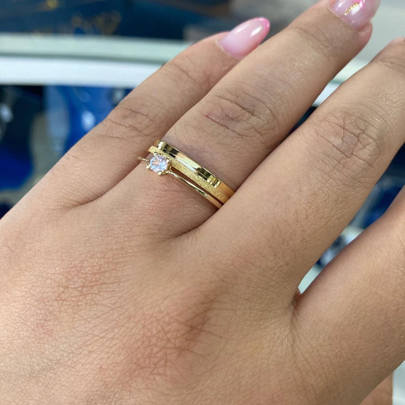 • Anel solitário banhado a ouro (semijoia)