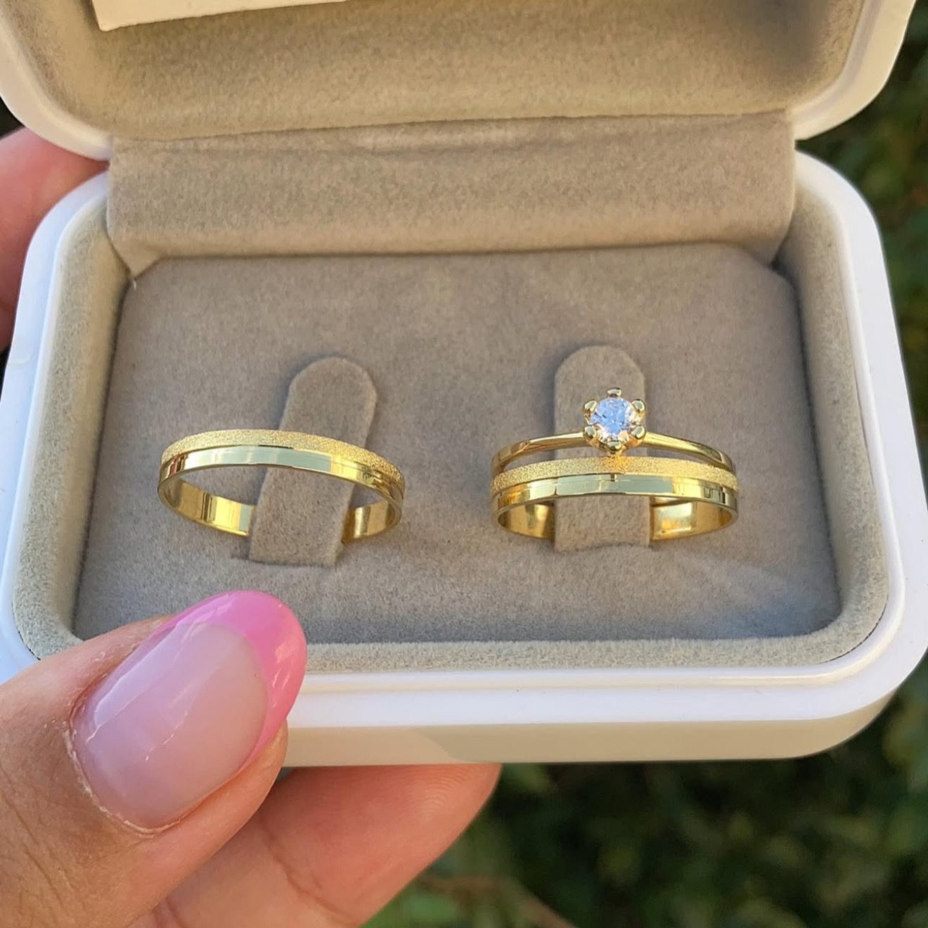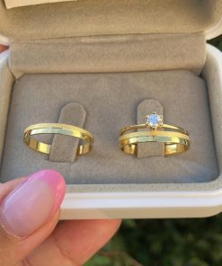 Com peso aproximado de 3g o par, é perfeita para quem busca leveza e conforto no uso diário. O conjunto acompanha um anel solitário semijoia banhado a ouro, tornando o momento ainda mais especial e completo.