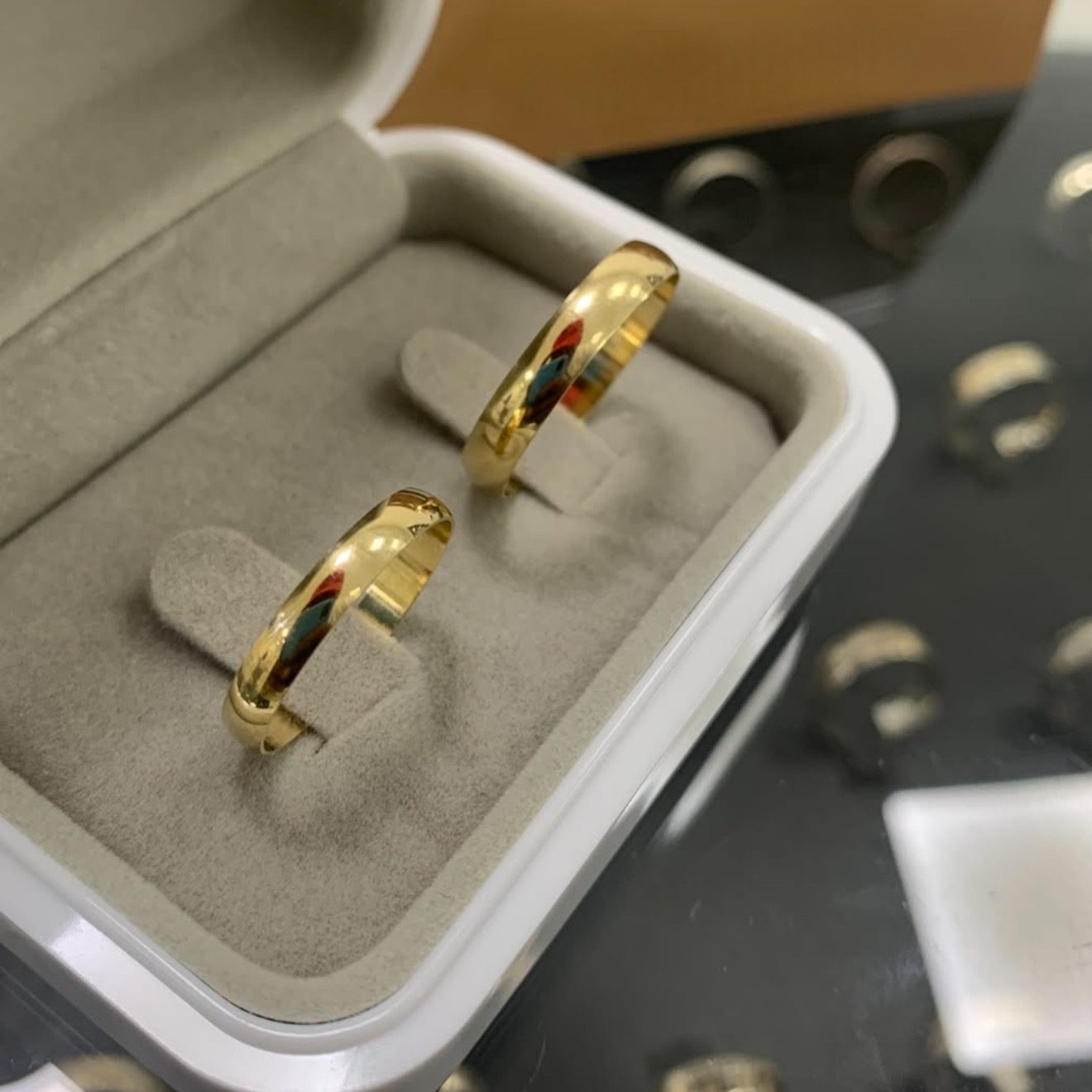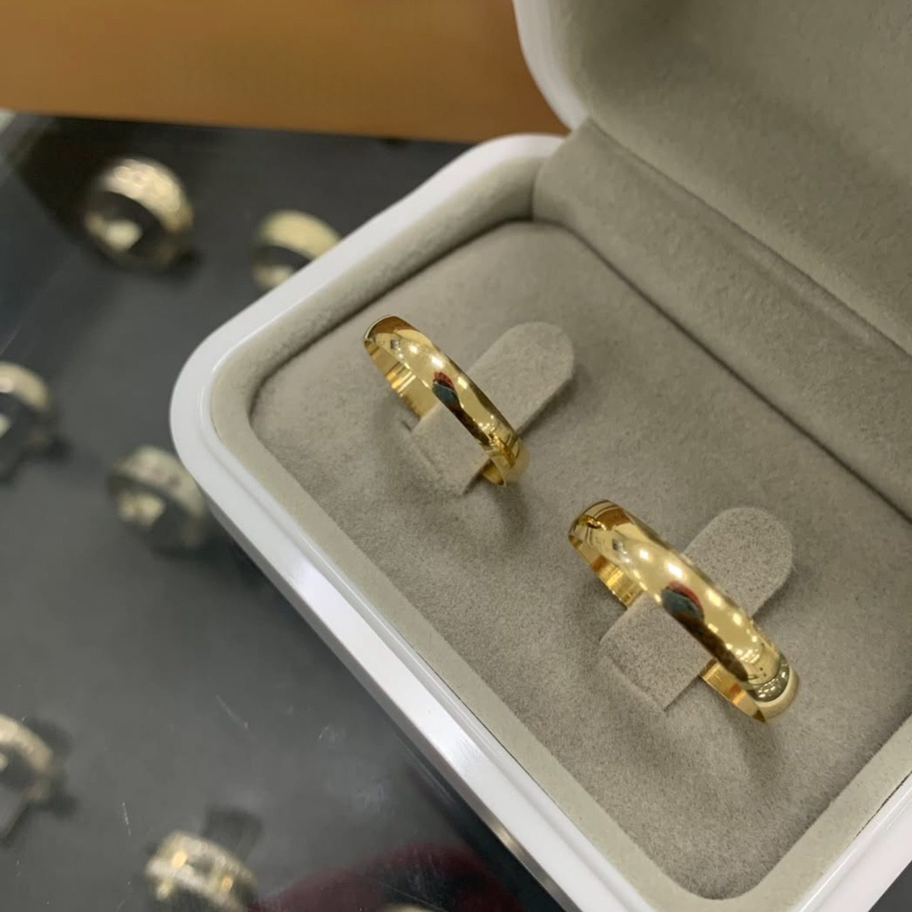 • Um par de alianças em ouro 18K