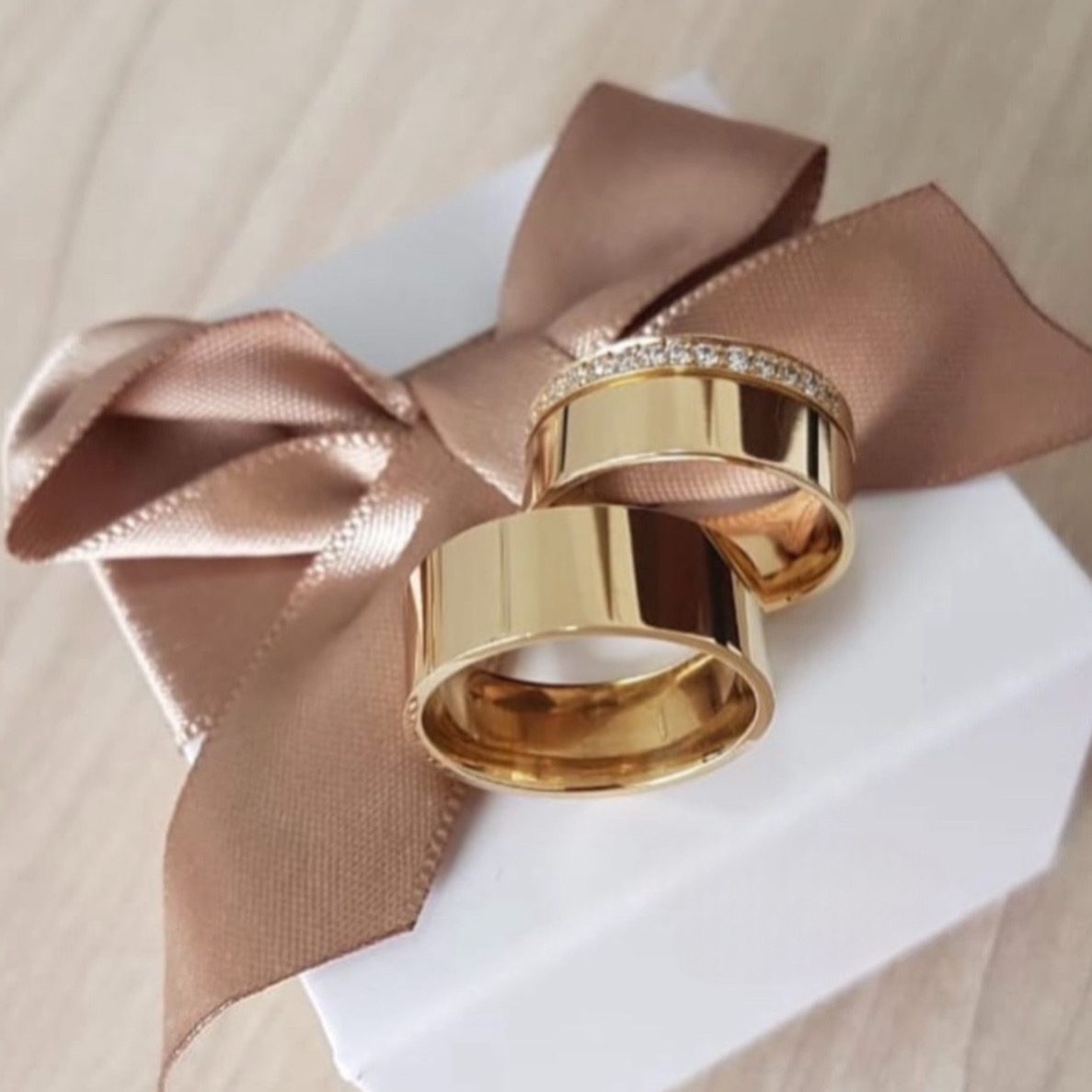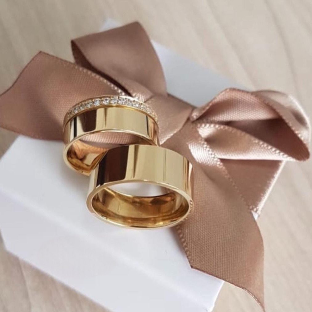 Alianças de Casamento 8mm | Moeda Antiga | Com 15 Pedras de Zircônia | Banhado a Ouro 18k