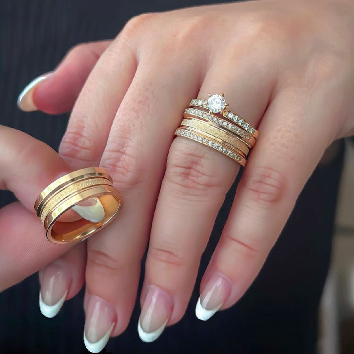 Estas alianças, inspiradas no estilo sofisticado Bulgari, são perfeitas para quem busca um design moderno e elegante. Com 8mm de largura, o modelo conta com 30 pedras de zircônia no feminino, dispostas em meia volta, e um friso central diamantado, proporcionando brilho e exclusividade. Feitas em moeda antiga e banhadas a ouro 18k, essas alianças garantem durabilidade e um acabamento requintado.