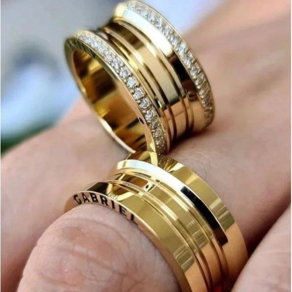• Modelo masculino grosso, com dois frisos centrais, seguindo o estilo Bulgari.