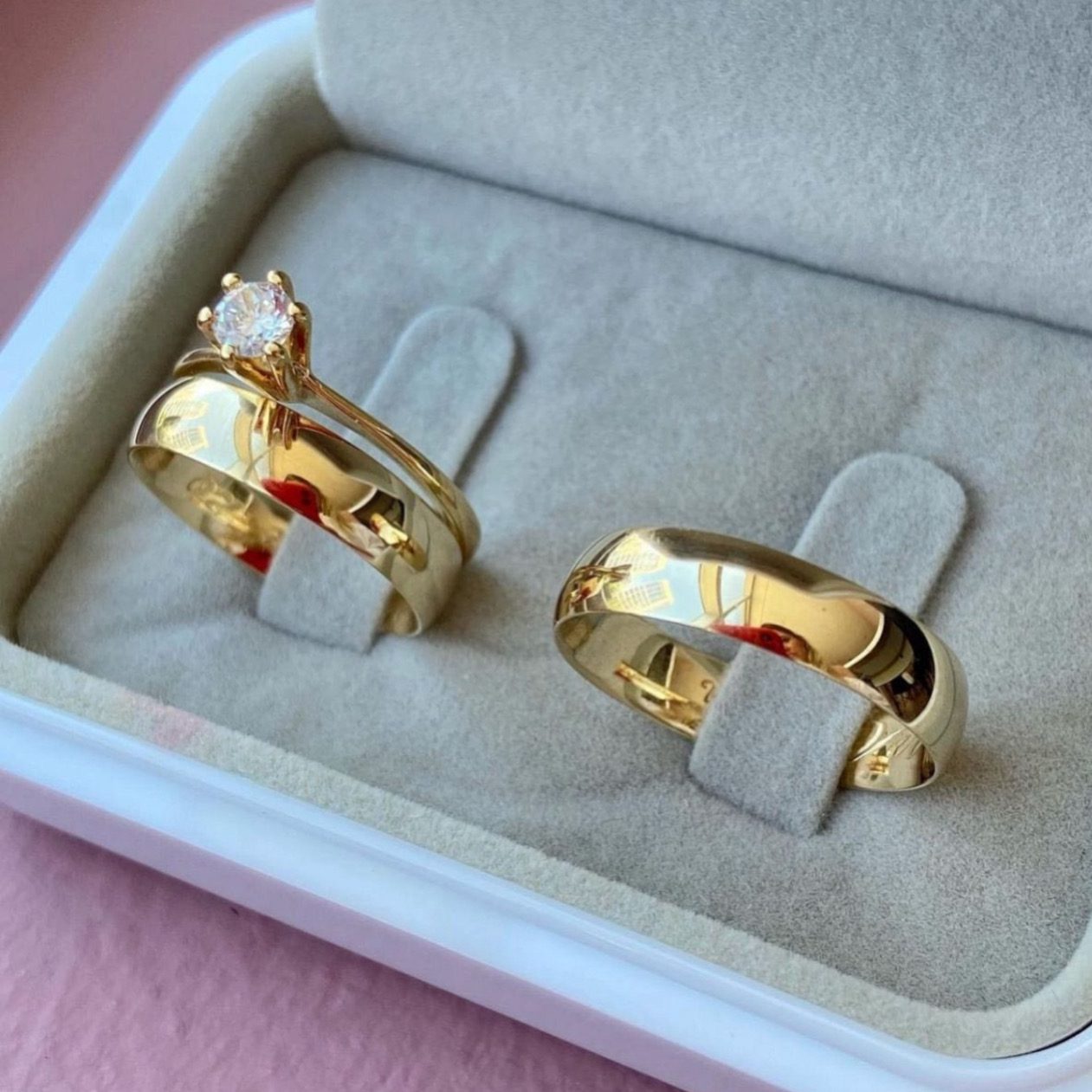 Alianças de Casamento 5mm | Linha Tradicional | Semi Anatômico | Modelo Agatha | Cor Semelhante ao Ouro | Banhado a Ouro 18k