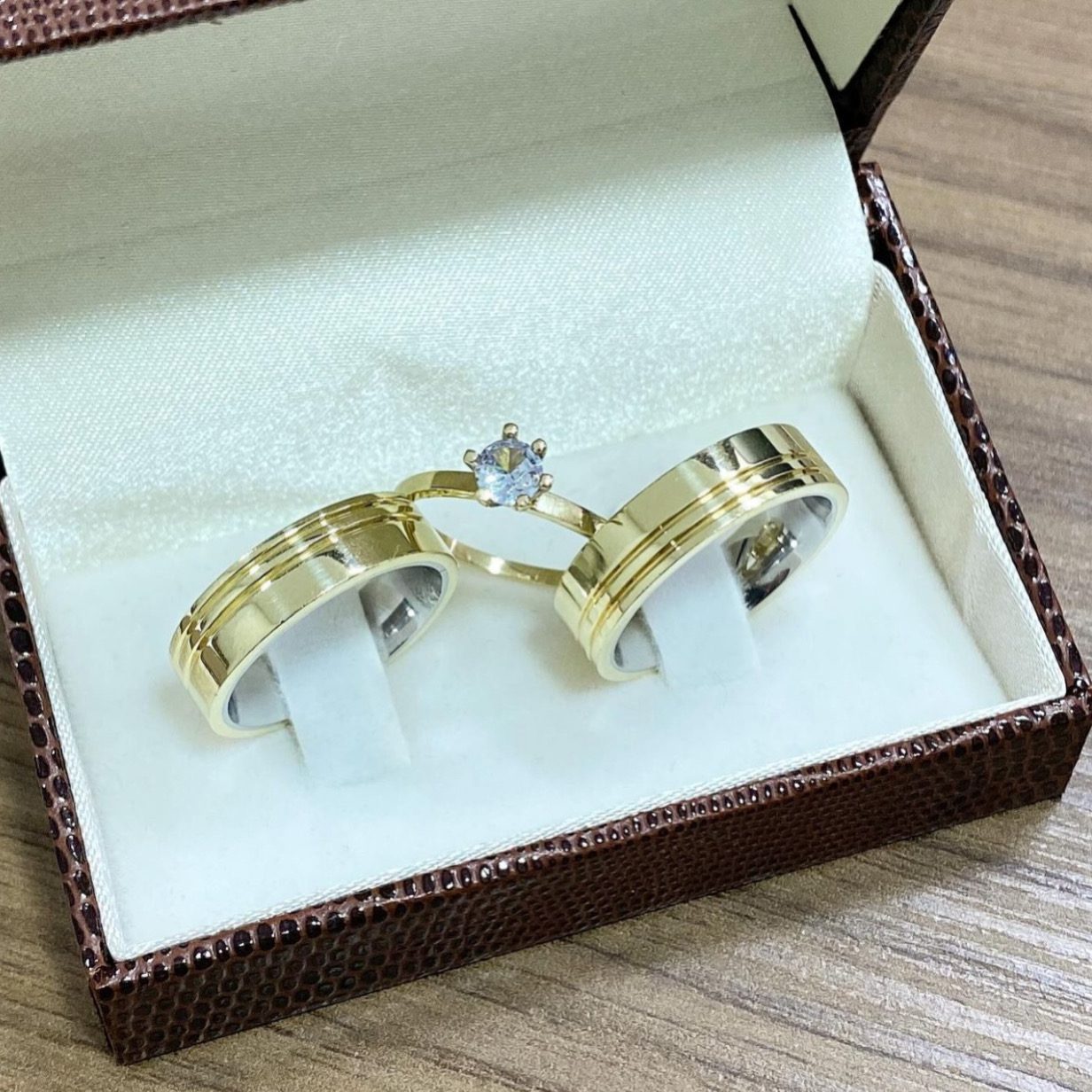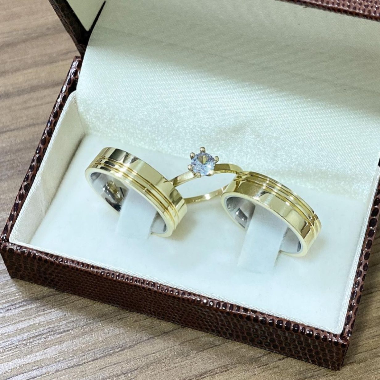 Alianças de Casamento Ouro 10K com Revestimento em Prata 6mm | Polida com 2 Frisos Laterais Anatômica