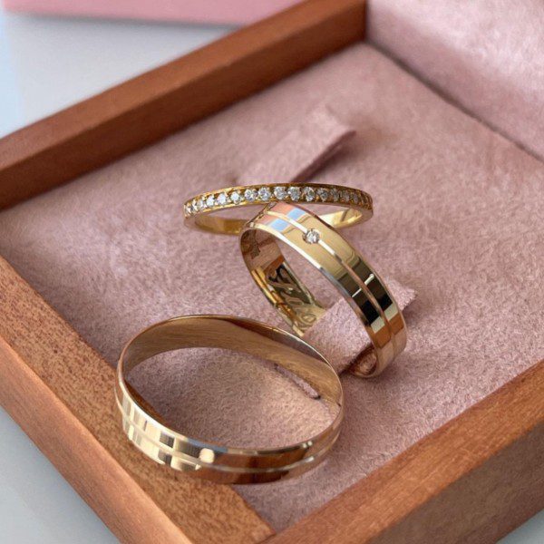 • Feminina com 1 pedra de zircônia no friso central, conferindo um brilho delicado.