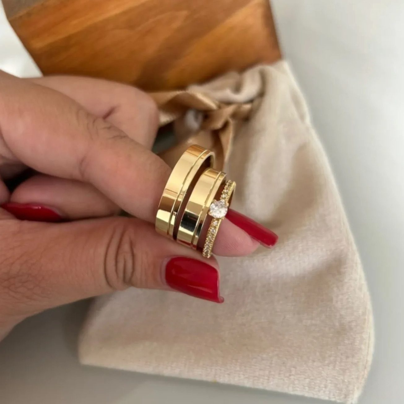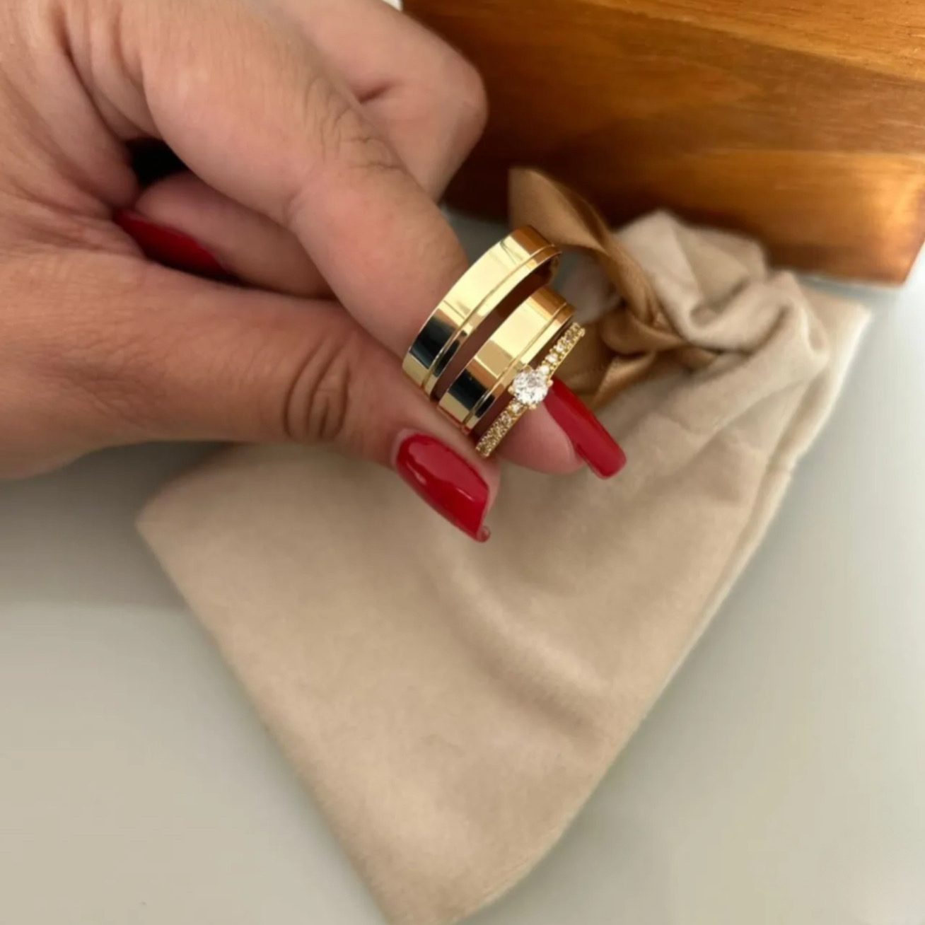 Alianças de Casamento 5mm | Modelo Reto com 1 Friso Lateral | Moeda Antiga Banhada a Ouro 18K | Anel Solitário Incluso