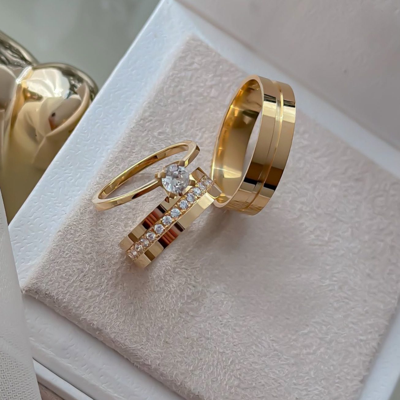 O conjunto se torna ainda mais especial com o anel solitário incluso, que completa o simbolismo do compromisso com romantismo e sofisticação.