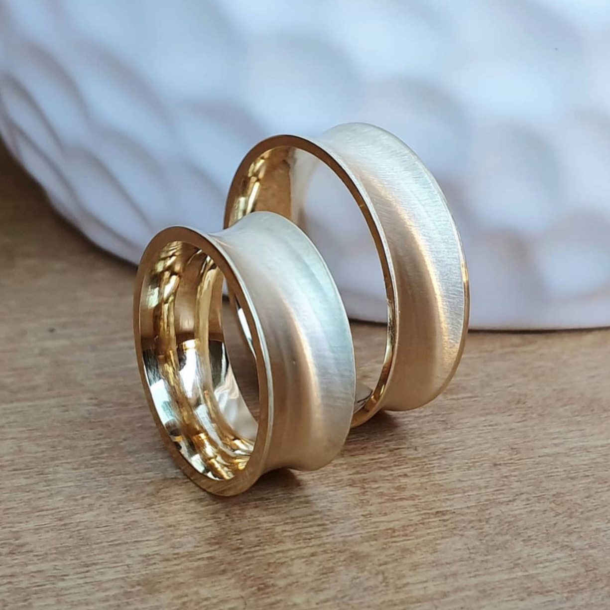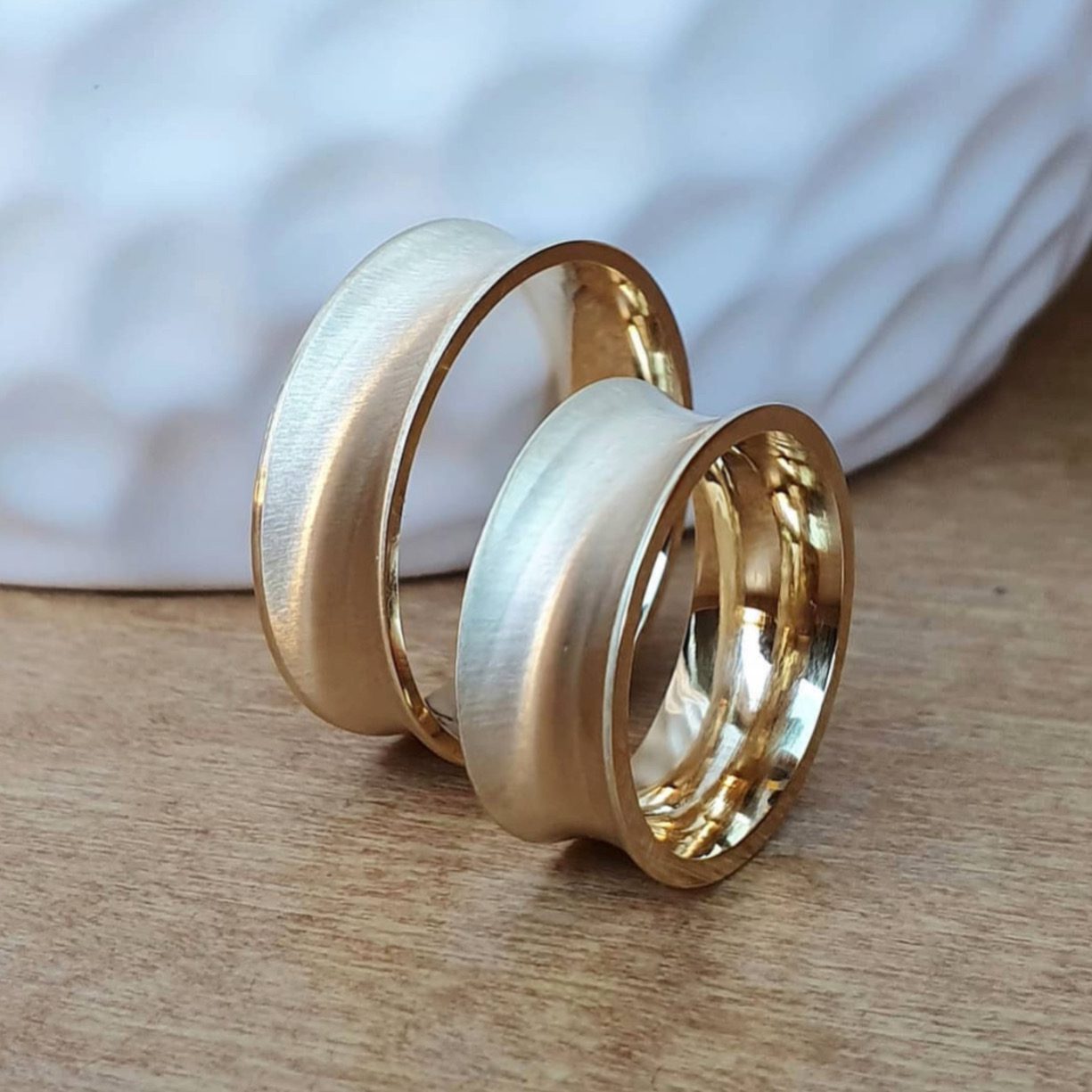 Alianças de Casamento 8mm | Modelo México | Côncava Fosca Lixada | Banhado a Ouro 18K