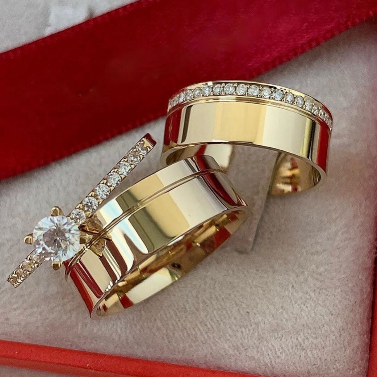 Alianças de Casamento 8mm | Largura Grossa | Liso Polido | Anel Cravejado Anel Solitário Incluso