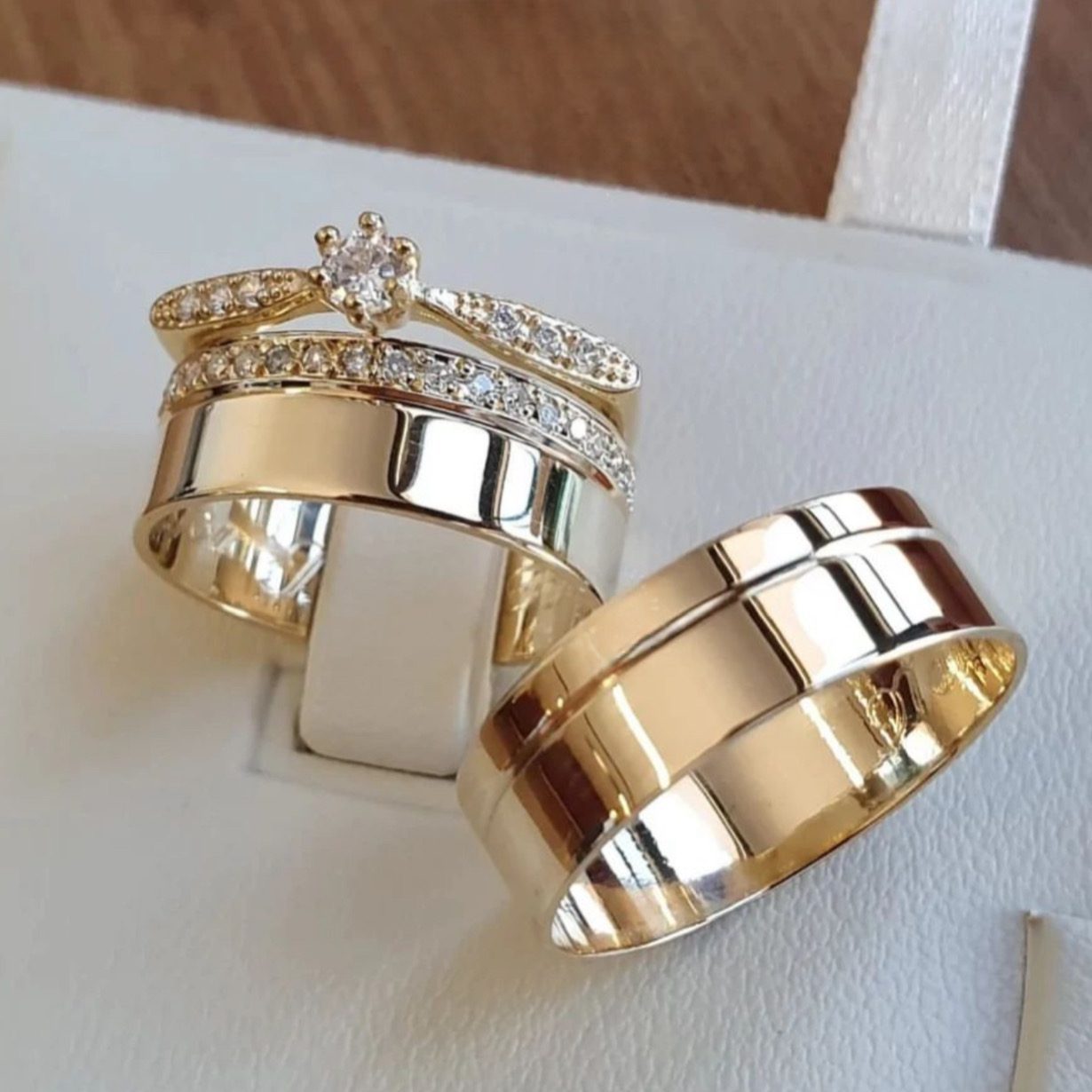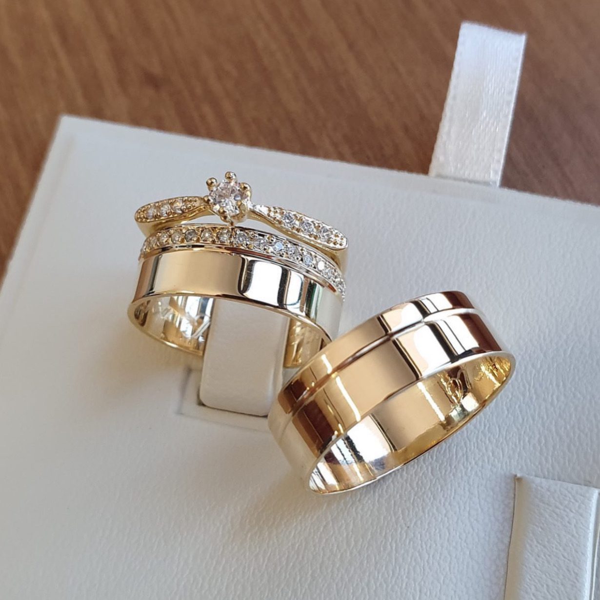 • Par de alianças Largura 8mm Grossa Liso Polido.