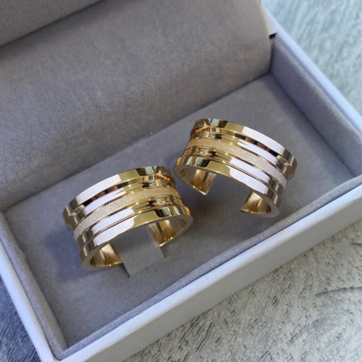• Par de alianças Moeda Antiga 10mm – Estilo Bulgari.