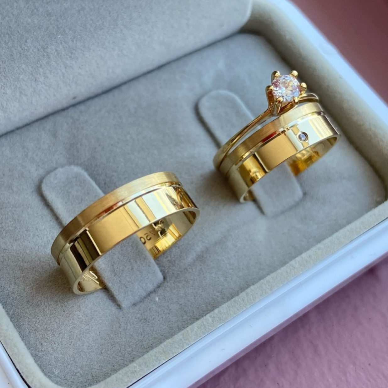 Alianças de Casamento 8mm | Modelo Liso Polido | Banhado a Ouro 18K | Anel Opcional