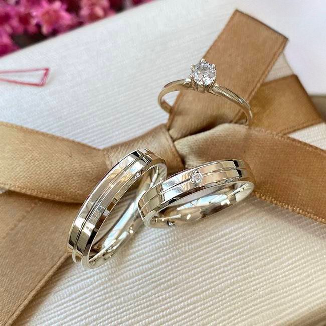• Modelo Feminino: Possui 1 pedra de zircônia dentro do friso, agregando brilho à peça.