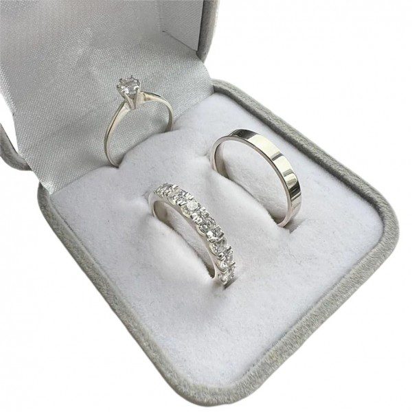 Alianças de Namoro em Prata 950 4mm | Modelo Beth Cravejado | Feminina com Até 20 Pedras de Zircônia | Masculina Lisa Anatômica
