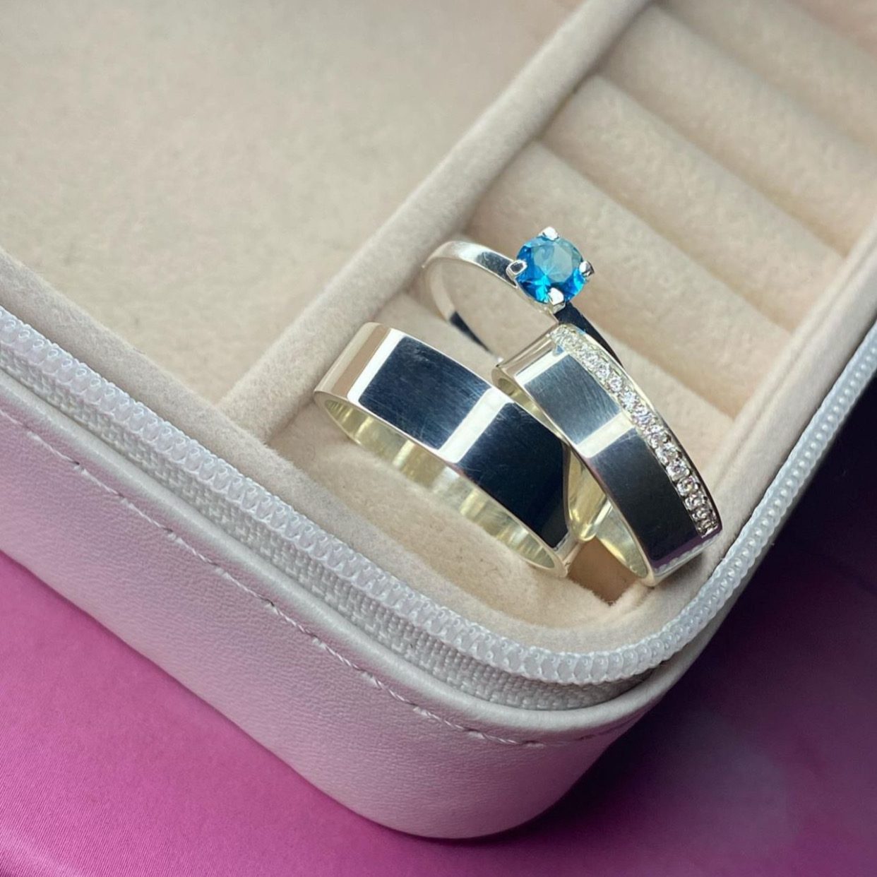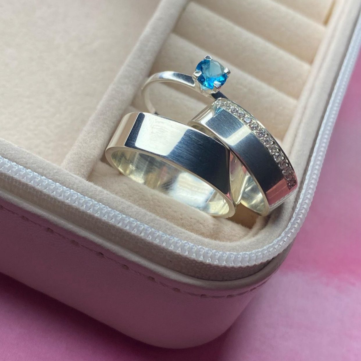 Alianças de Namoro 7mm em Prata 950 | Modelo Sely | Semi Anatômico com 15 Pedras de Zircônia