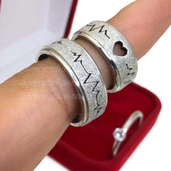 Alianças De Namoro 8mm Batimentos Com Coração Diamantado