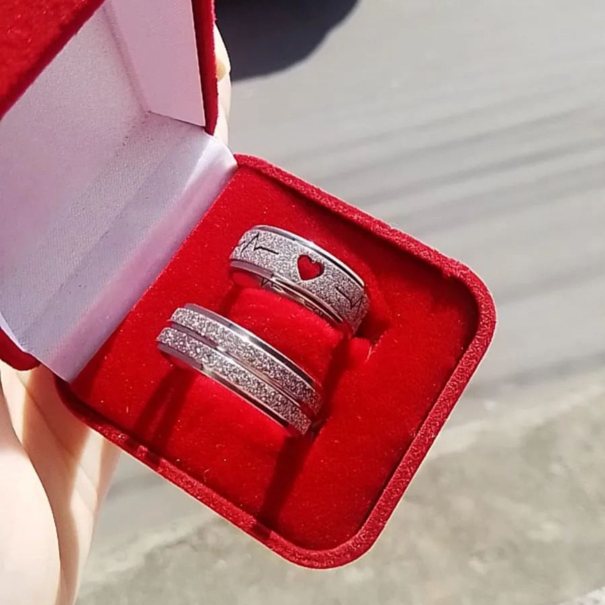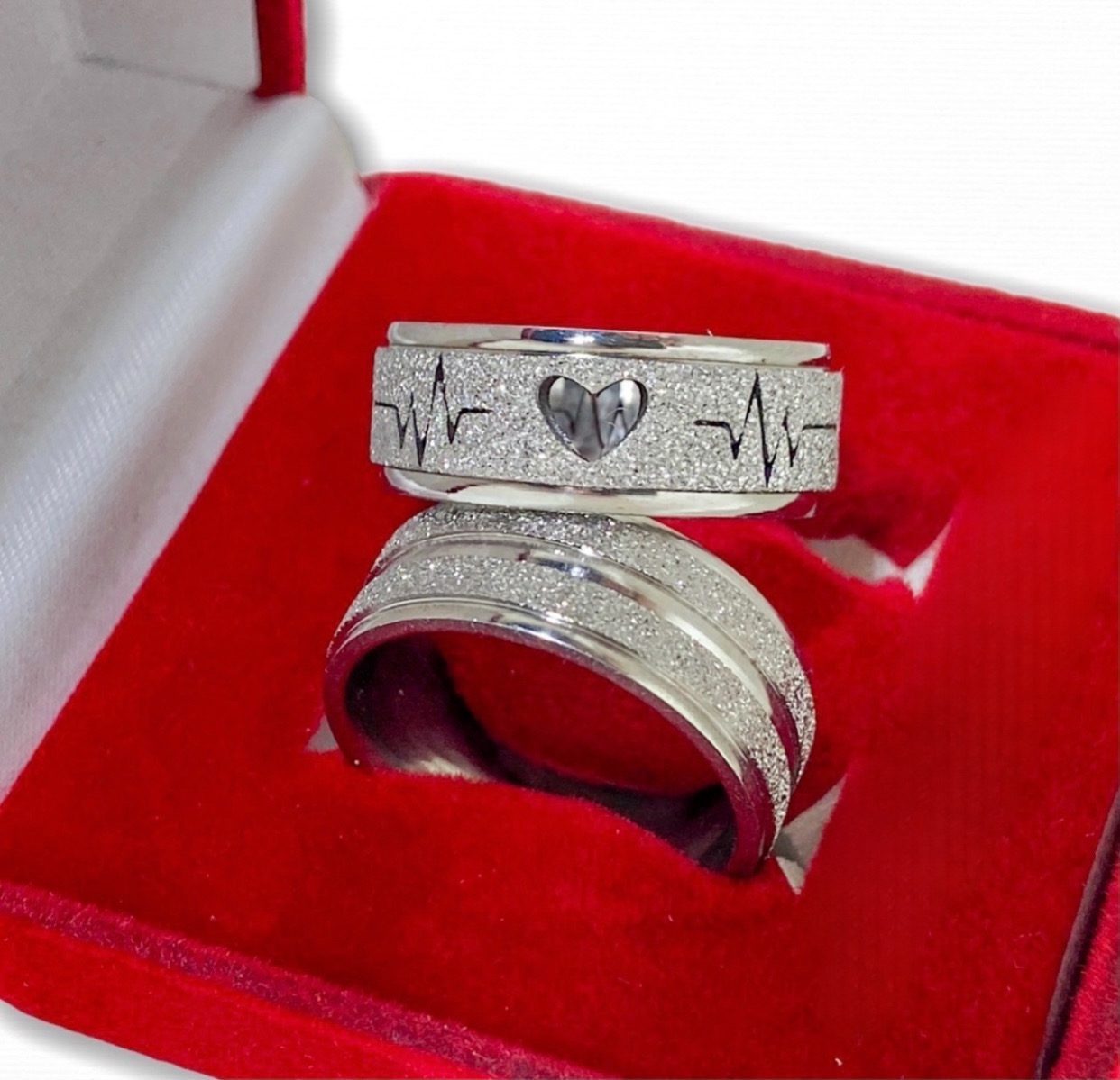Alianças De Namoro 8mm Diamantado Com Coração e Batimentos.- Ideal para namoro, noivado e compromisso.