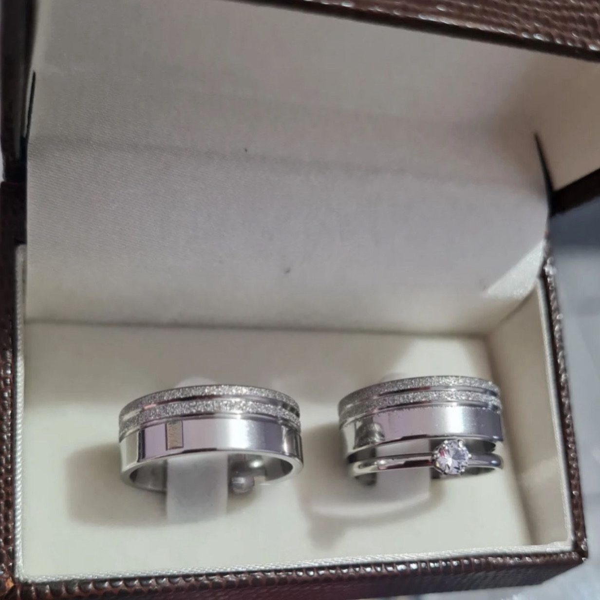 ● Par de Alianças prata em aço cirúrgico.