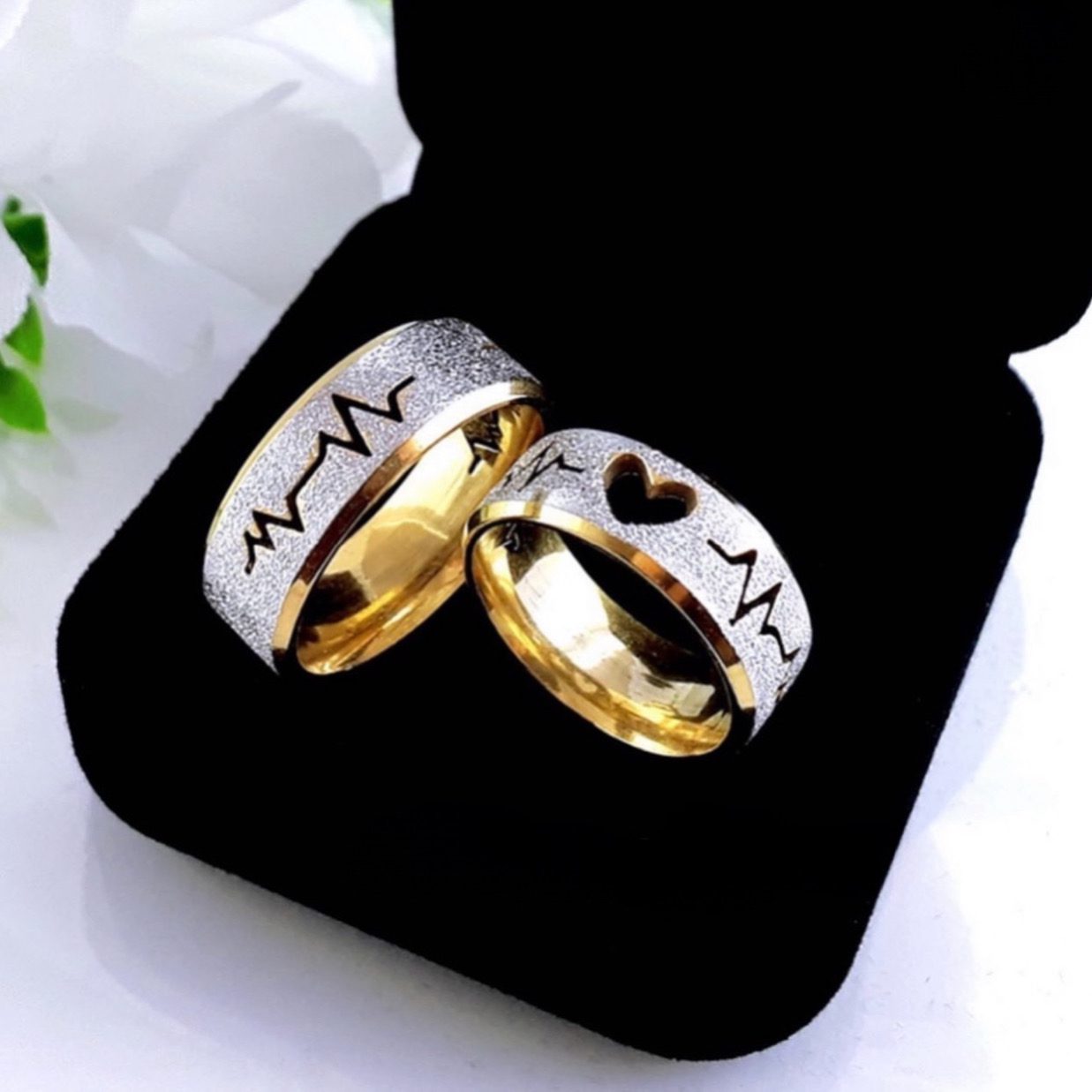 Alianças De Namoro 8mm Fosco Com Coração Acabamento chanfrado
