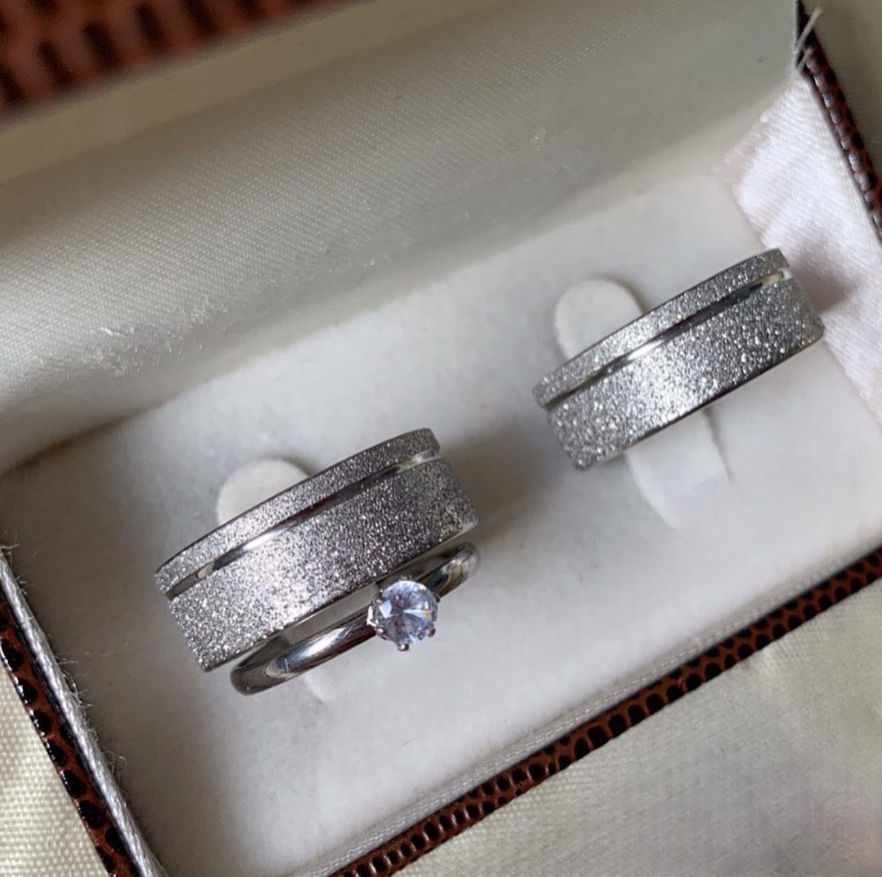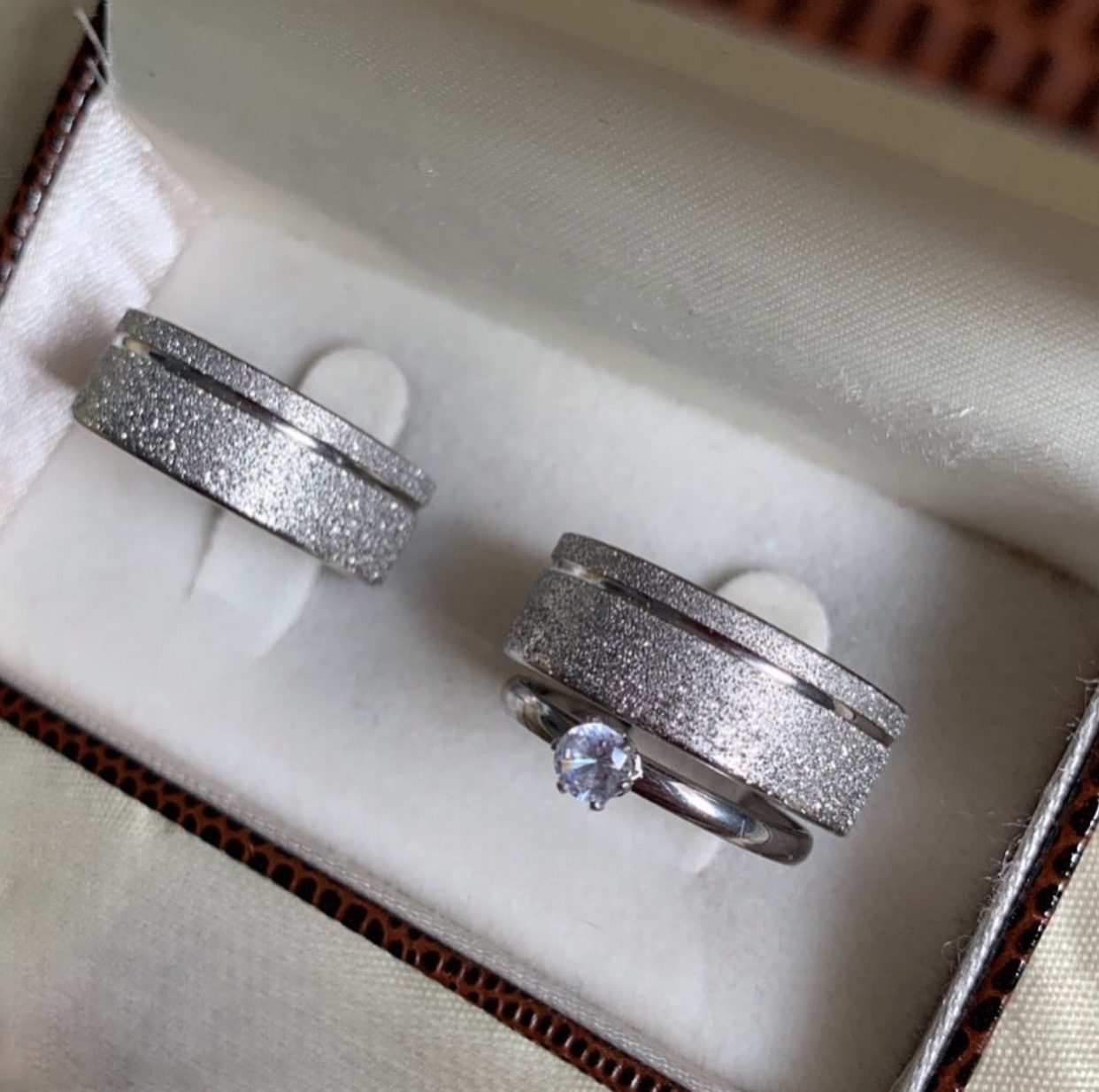 ● Par de Alianças prata em aço cirúrgico.