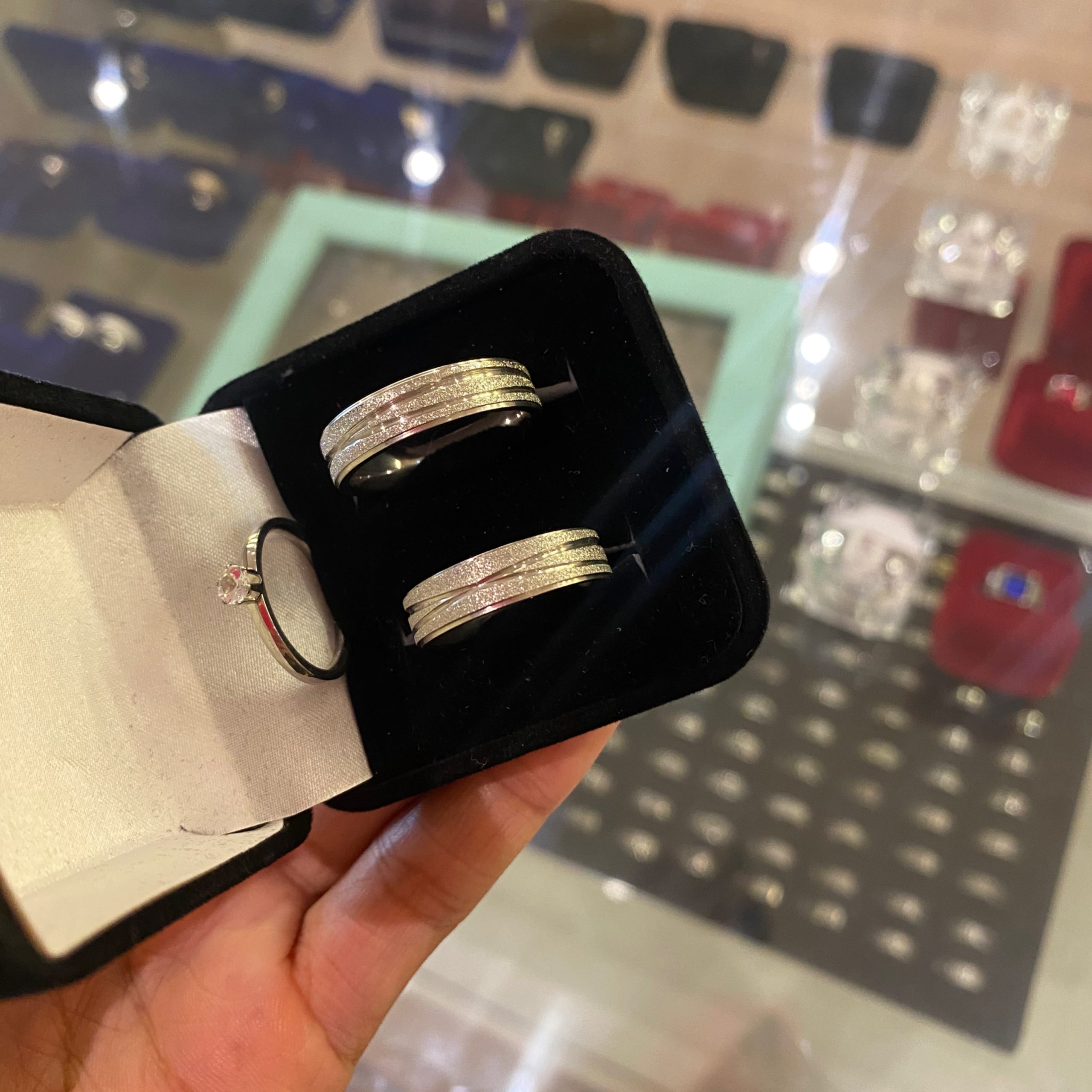 Par de alianças prata em aço cirúrgico 6mm – Feminino e Masculino Diamantado Com Frisos Trançados – Ideal para namoro e compromisso.