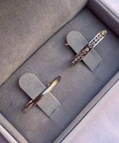 Delicadeza e significado em cada detalhe. Esse par de alianças ultra fino é ideal para casais que preferem peças discretas, mas com estilo e personalidade. A aliança feminina possui formato reto com aplicação de pedras de zircônia, trazendo um brilho sutil e romântico, enquanto a masculina tem formato redondo e acabamento liso, com visual clássico e atemporal. Um modelo leve, confortável e resistente — perfeito para simbolizar o amor no namoro ou compromisso.